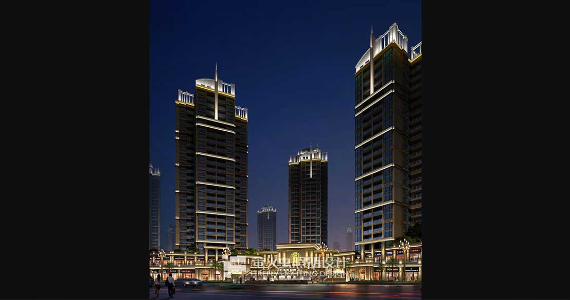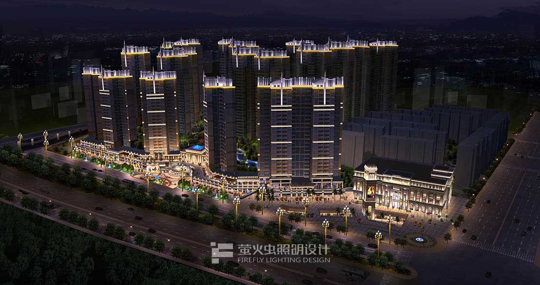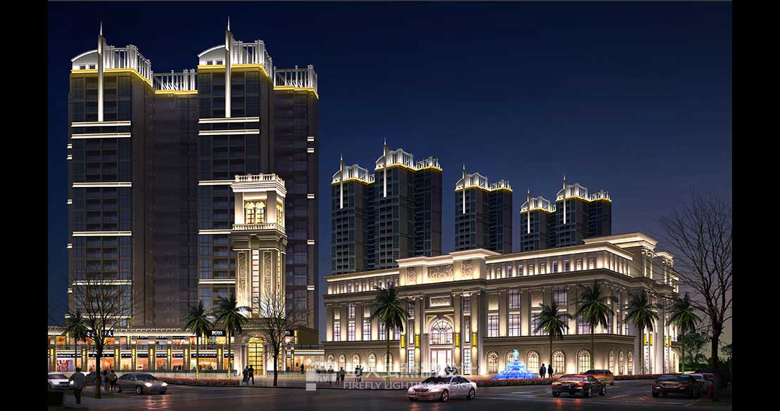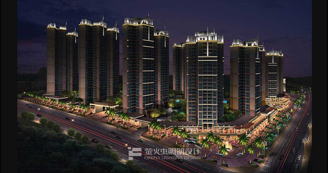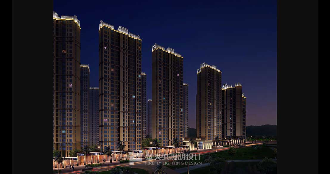 灯光统一大气,体现建筑没有外飘阳台的端庄形象、是现行的高档住宅建筑。