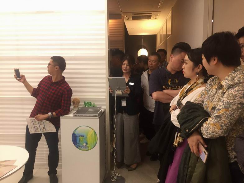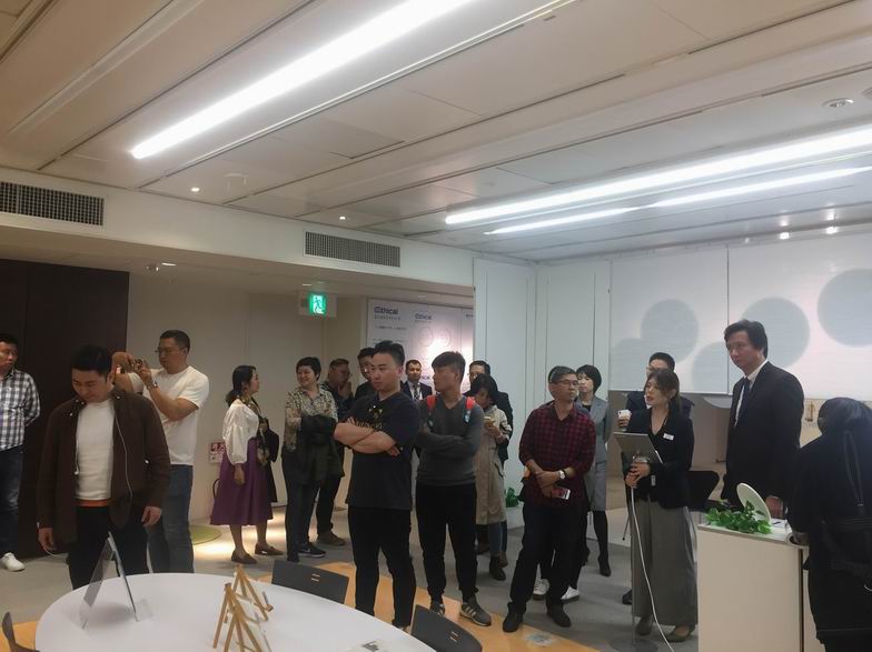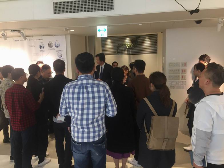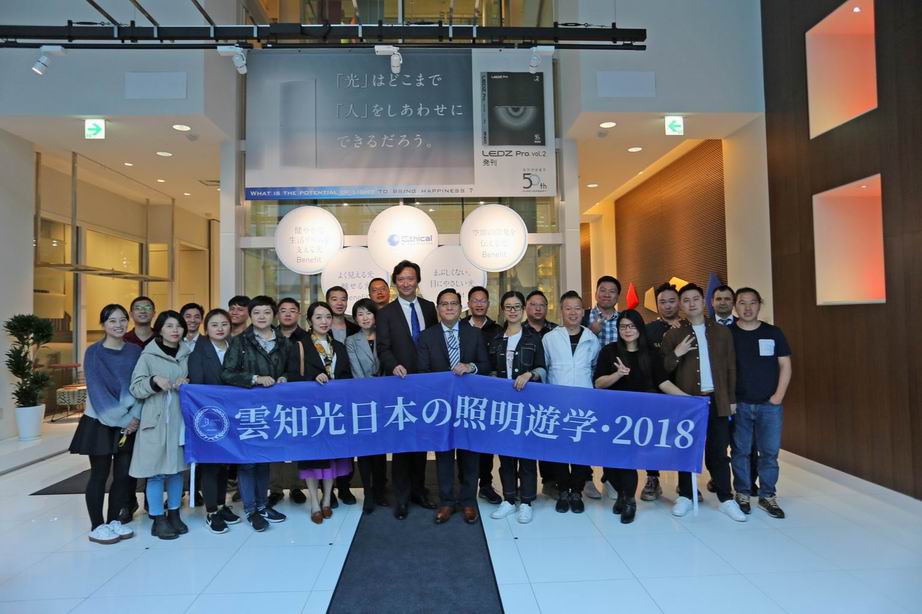 全体同学和远藤照明员工在远藤照明大厅合影留念。