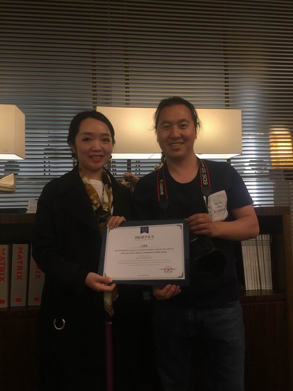颁发证书,与美女老师姚莉萌合影。