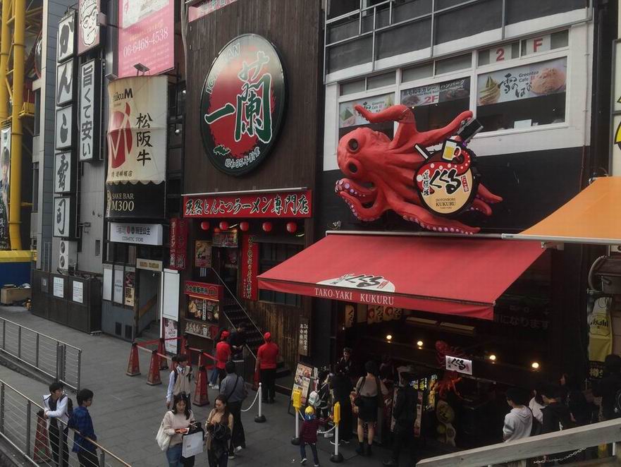 心斋桥——卖螃蟹的店,门头的仿真雕塑跟真实螃蟹一样爬动,让你感觉这海鲜真新鲜。